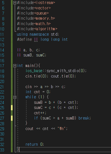 BOJ 1712 - 손익분기점