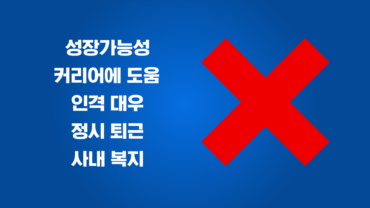 그뿐만 아니라 중소기업은 성장 가능성이 없고, 커리어에 도움도 되지 않고, 인격 대우도 제대로 안 해줄뿐더러 야근도 많고 사내 복지라고는 1도 없었습니다.