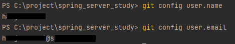 git config user.name 과 git config user.email 명령어를 사용하여 현재 사용하는 git 정보와 동일한지 확인합니다.